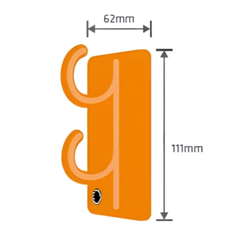 Försedd med kraftig dubbelhäftande tejp samt hål för mer permanent placering