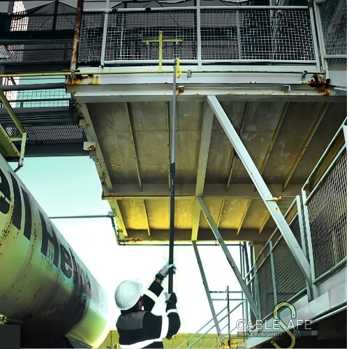 Säkerhetskrok Range Extender är perfekt för dig som arbetar inom industri, installation, bygg, drift och underhåll där standardkrokar inte når upp till önskad höjd. Den är designad för att hjälpa dig hålla kablar och slangar upphängda på ett säkert sätt och minska risken för snubbel- och fallolyckor.