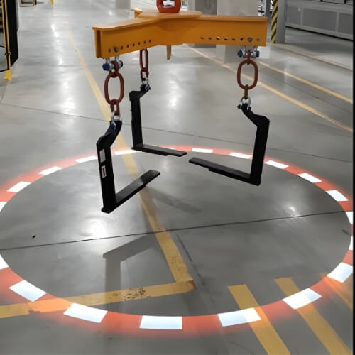 Förbättra arbetssäkerheten med Alis Varningsprojektor genom att projicera ljussymboler nedanför den upphöjda lasten.