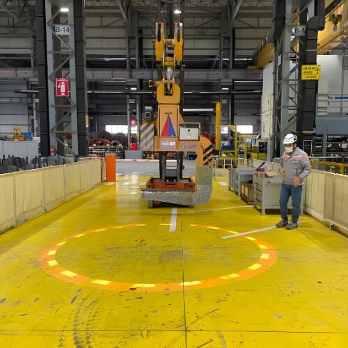 Ett effektivt sätt att uppmärksamma personal på faran med traverser och kranar som opererar i industriella miljöer.